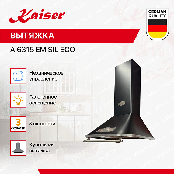 Помимо этого, вытяжка Kaiser A 6315 EM SIL ECO включает в себя многоуровневую систему фильтрации, которая эффективно задерживает жирные частицы и неприятные ароматы, а также легкость в обслуживании благодаря съемным фильтрам. Это делает эксплуатацию устройства не только комфортной, но и практичной, а соответствие высоким стандартам качества гарантирует долгий срок службы.