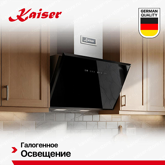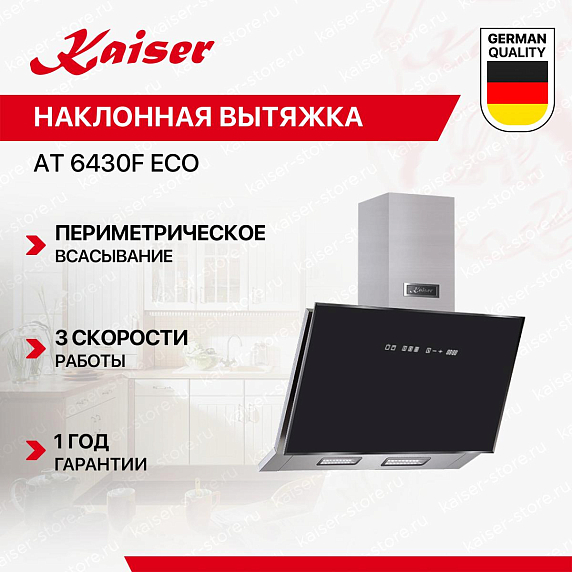 Наклонная вытяжка Kaiser AT 6430F Eco — это современное решение для вашей кухни, объединяющее в себе эстетику и функциональность. Произведенная в Германии, эта вытяжка гарантирует высокое качество и надежность в использовании, что подтверждается 12-месячной гарантией от производителя. Дизайн вытяжки выполнен в черном цвете, что делает ее универсальным элементом для любого интерьера. Материалы корпуса — стекло и металл — придают изделию современный и стильный вид. Ширина устройства составляет 60 см, что позволяет установить его даже на небольшой кухне. Наклонная форма обеспечивает эффективное всасывание воздуха, а также добавляет изделию эстетической привлекательности. Освещение в вытяжке представлено двумя галогенными лампами по 20 Вт каждая, что обеспечивает яркий и равномерный свет на всей поверхности варочной панели.