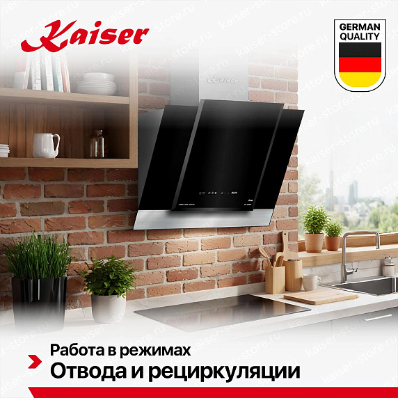 Наклонная вытяжка Kaiser AT 6438F ECO — это высококачественная бытовая техника, произведенная в Германии. Устройство обладает 12-месячной гарантией, что подтверждает его надежность и долговечность. Эта модель относится к коллекции Modern и выполнена в стильном черном цвете, что позволяет ей идеально вписаться в любой современный интерьер. Наклонная форма вытяжки, свойственная данной модели, позволяет эффективно улавливать пары и запахи, обеспечивая чистый и свежий воздух на вашей кухне. Вытяжка изготовлена из прочного сочетания стекла и металла, что гарантирует ее долгий срок службы и устойчивость к повреждениям. Освещение вытяжки осуществляется за счет двух галогенных ламп мощностью 20 Вт каждая. Это обеспечивает отличное освещение рабочей поверхности и придает дополнительный комфорт при приготовлении пищи. Периметрическое всасывание гарантирует эффективное удаление воздуха, а три скорости работы позволяют выбрать оптимальный режим для каждой ситуации.
