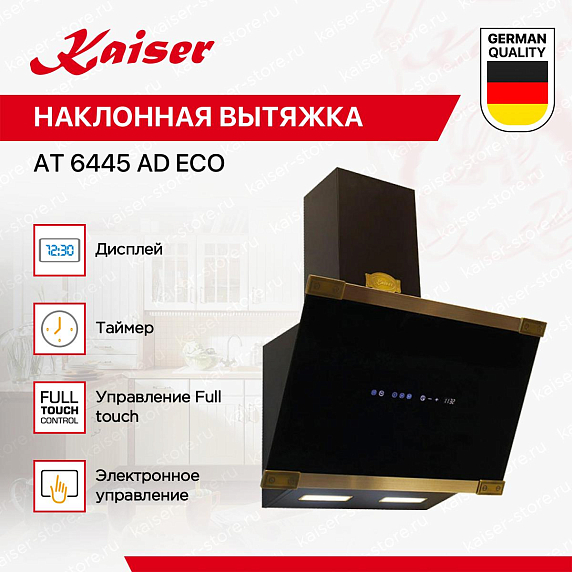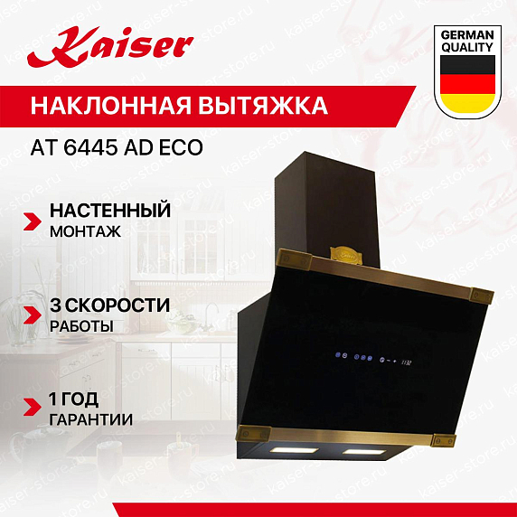 Наклонная вытяжка Kaiser AT 6445 AD ECO — это элегантное сочетание высочайшего качества и стильного дизайна. Произведенная в Германии, эта модель отличается непревзойденной надежностью и долговечностью, подтвержденной гарантией на 12 месяцев. С первого взгляда привлекает внимание ее уникальный дизайн. Принадлежит она к коллекции Retro, что отражается в ее внешнем виде. Цвет антрацит и фурнитура античного золота придают ей особый шик и благородство. Корпус из крашеного металла не только выглядит привлекательно, но и обеспечивает прочность и долговечность конструкции. Устройство оснащено светодиодным освещением, которое обеспечивает равномерное и яркое освещение. Два светодиода по 3 Вт каждый позволяют четко видеть все детали приготовления пищи.