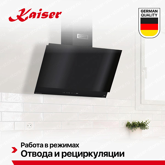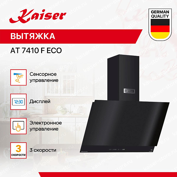 Вытяжка Kaiser AT 7410 F eco — это современное устройство, разработанное немецкими инженерами для создания комфортного и чистого воздуха на кухне. Этот настенный прибор выполнен в стильном черном цвете, что позволяет ему гармонично вписываться в любой интерьер. Дизайн вытяжки включает в себя сочетание стекла и металла, что придает ей современный и элегантный вид.