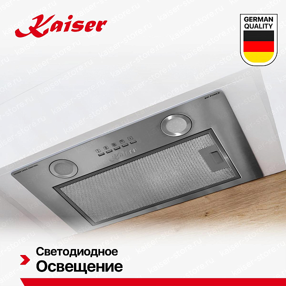 Встраиваемая вытяжка Kaiser EA 543 M — это идеальное решение для современной кухни. Произведенная в Германии, эта модель сочетает в себе высокое качество и стильный дизайн. Она имеет компактные размеры (ширина 52 см, глубина 29.6 см, высота 25.4 см), что позволяет легко встроить её в подвесной шкаф, сохраняя при этом пространство на кухне. Главной особенностью вытяжки является её внешний вид. Она выполнена в цвете нержавеющей стали, что придает ей современный и элегантный вид. Материал корпуса — крашеный металл, который обеспечивает прочность и долговечность изделия. Дизайн этой модели относится к коллекции Modern, что подчеркивает её современность и стильность. Освещение вытяжки осуществляется двумя галогенными лампами мощностью 40 Вт каждая. Это обеспечивает яркое и равномерное освещение рабочей зоны. Управление вытяжкой осуществляется с помощью электронных кнопок, что делает её использование максимально удобным и простым.